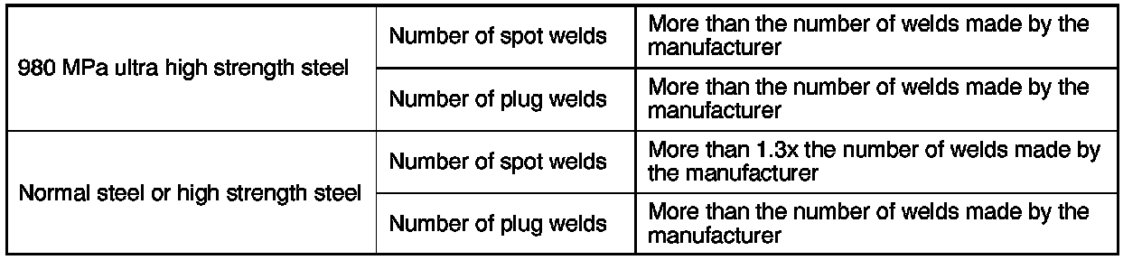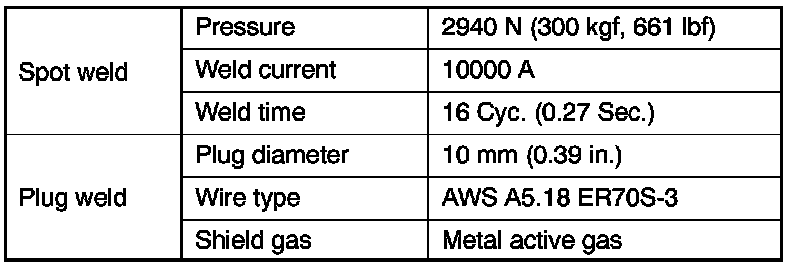 1. Follow the welding conditions below when welding ultra high strength steel to assure sufficient weld strength.