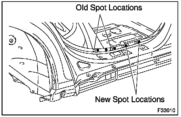 NOTICE: Inspect the welds after spot welding. For points with insufficient weld strength join the panels using plug welds.