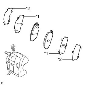 (c) Install the front No. 1 anti-squeal shim and front No. 2 anti-squeal shim to each front disc brake pad.