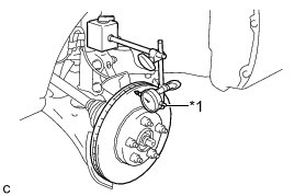 (c) Using a dial indicator, measure the disc runout 10 mm (0.394 in.) away from the outer edge of the front disc.