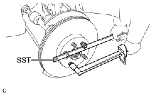 (b) Using SST to hold the disc, tighten the disc with the 5 nuts.