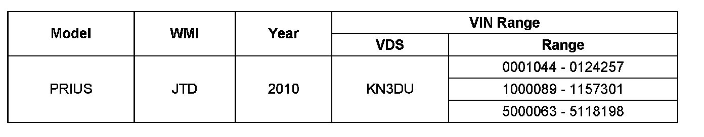 II. Identification of Affected Vehicles