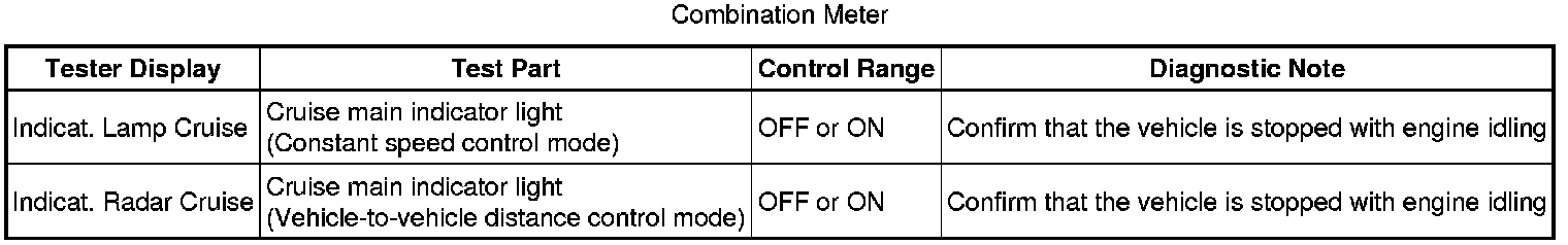 (e) Check the Data List for proper functioning of the cruise main indicator light.