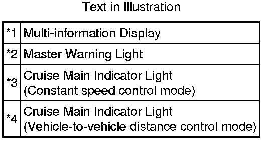 During constant speed control mode, the cruise main indicator light (constant speed control mode) flashes. During vehicle-to-vehicle distance control, the cruise main indicator light (vehicle-to-vehicle distance control mode) flashes.