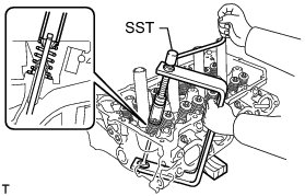 (c) Install the valve, compression spring and spring retainer to the cylinder head.