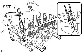 (d) Using SST, compression spring and install the valve retainer locks.