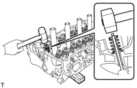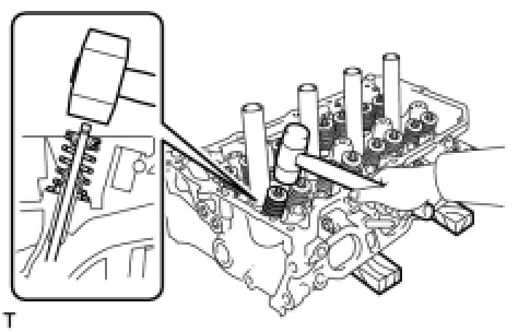 (e) Using a plastic-faced hammer, lightly tap the valve stem tip to ensure a proper fit.
