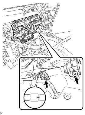 * Be sure to support the air conditioning unit assembly when removing it because failure to do so may cause the bracket of the air conditioning unit assembly to break.
