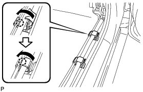 (d) Engage each claw to close the door scuff plate clamps as shown in the illustration.