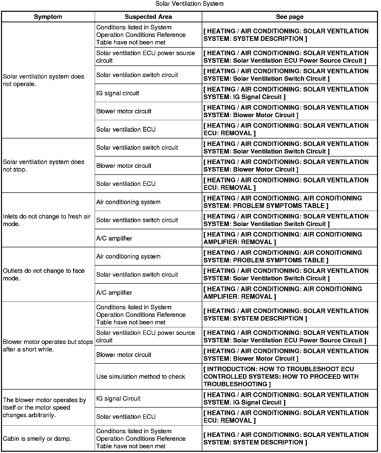 HEATING / AIR CONDITIONING: SOLAR VENTILATION SYSTEM: PROBLEM SYMPTOMS TABLE