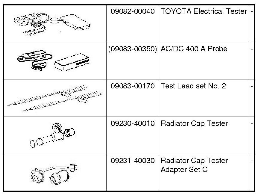 PREPARATION: HYBRID / BATTERY CONTROL: RECOMMENDED TOOLS