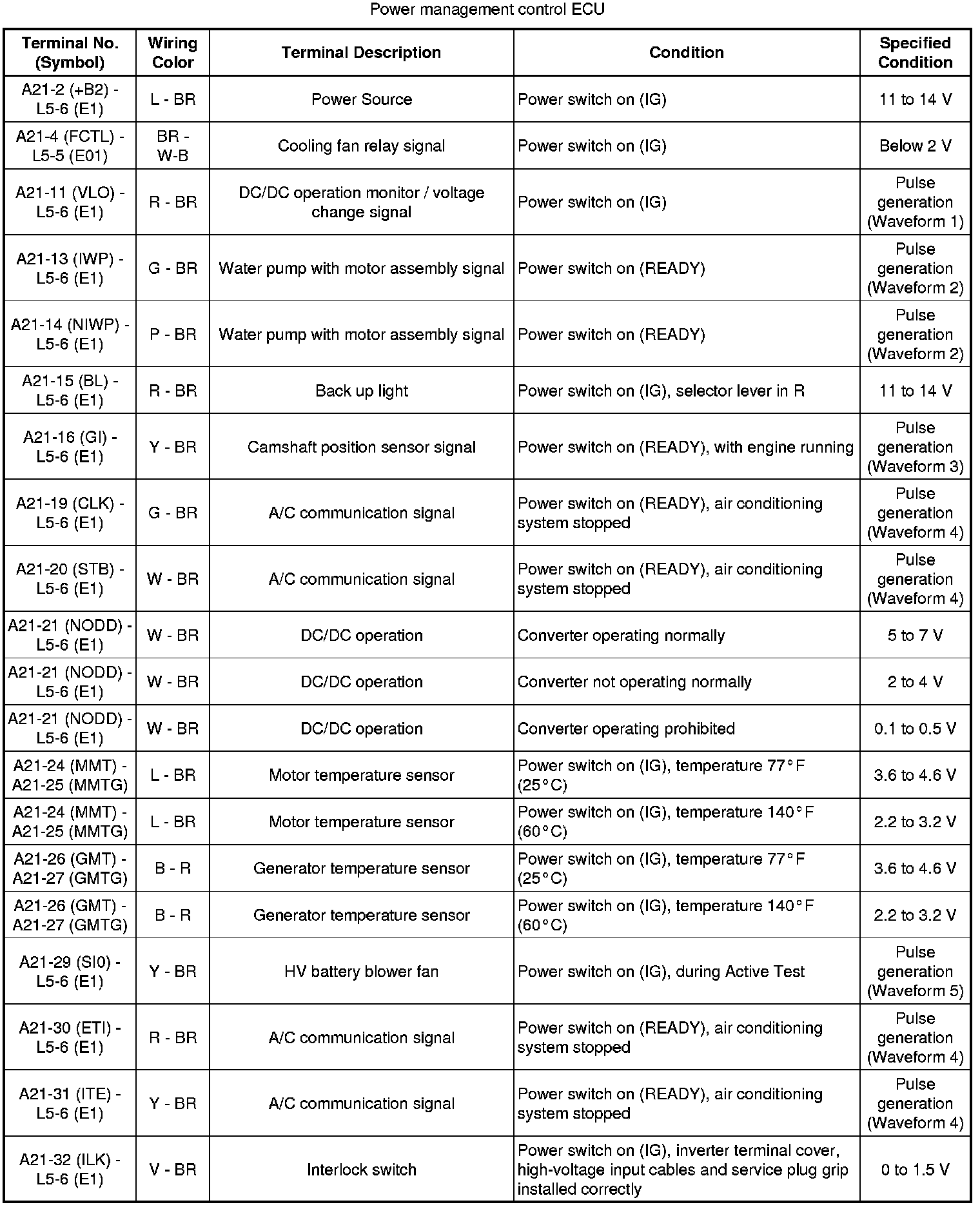 HYBRID / BATTERY CONTROL: HYBRID CONTROL SYSTEM: TERMINALS OF ECU