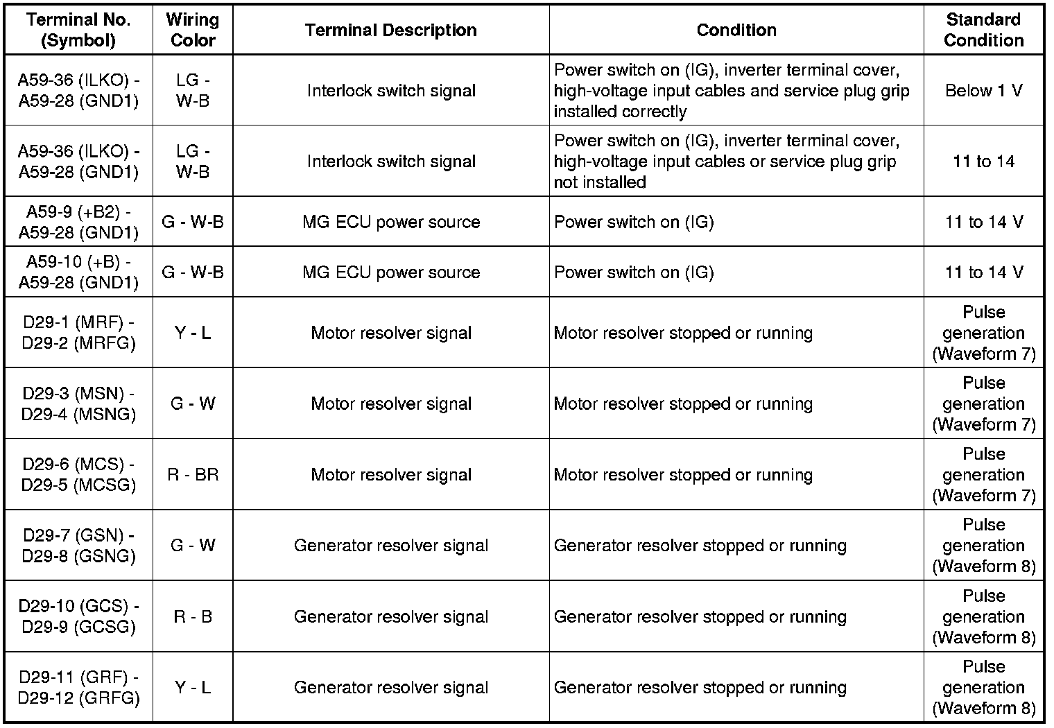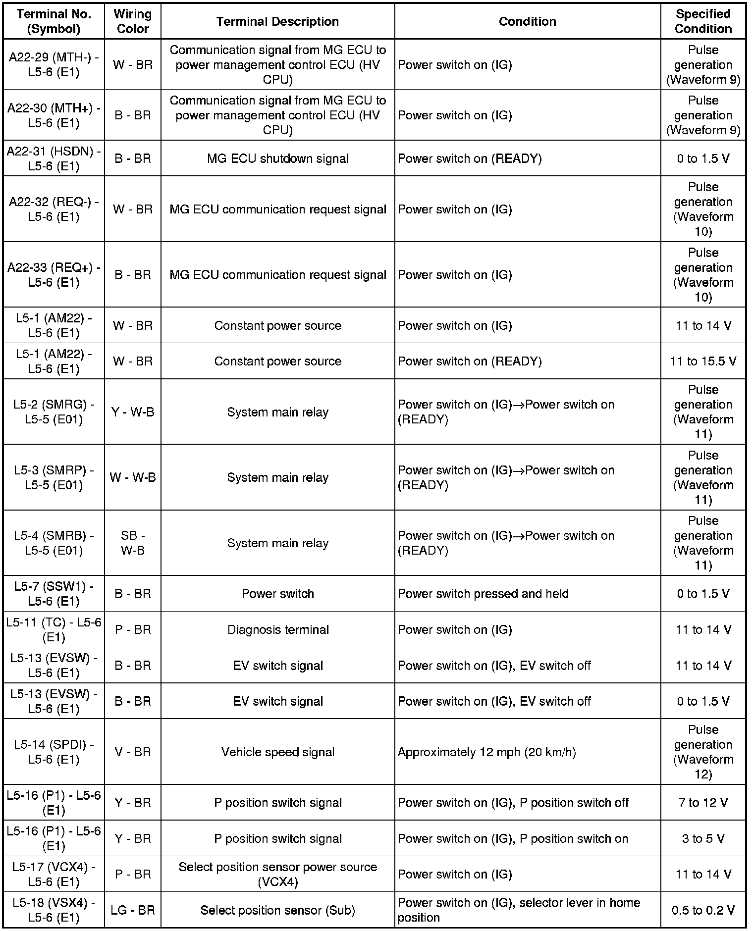 (j) Waveform 10 (MG ECU communication request signal)