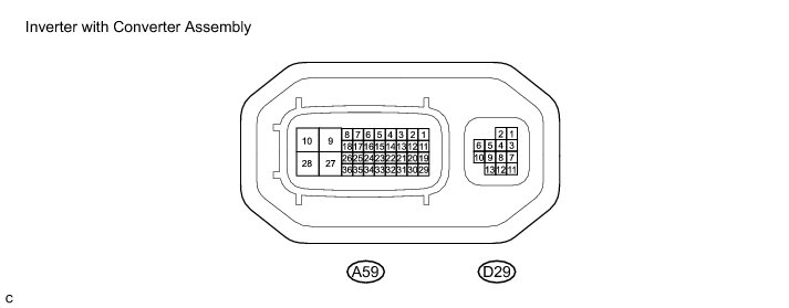 Do not measure the voltage or waveform directly at the sealed side of the inverter with converter assembly connector. Doing so may damage the connector because the connector is waterproof.