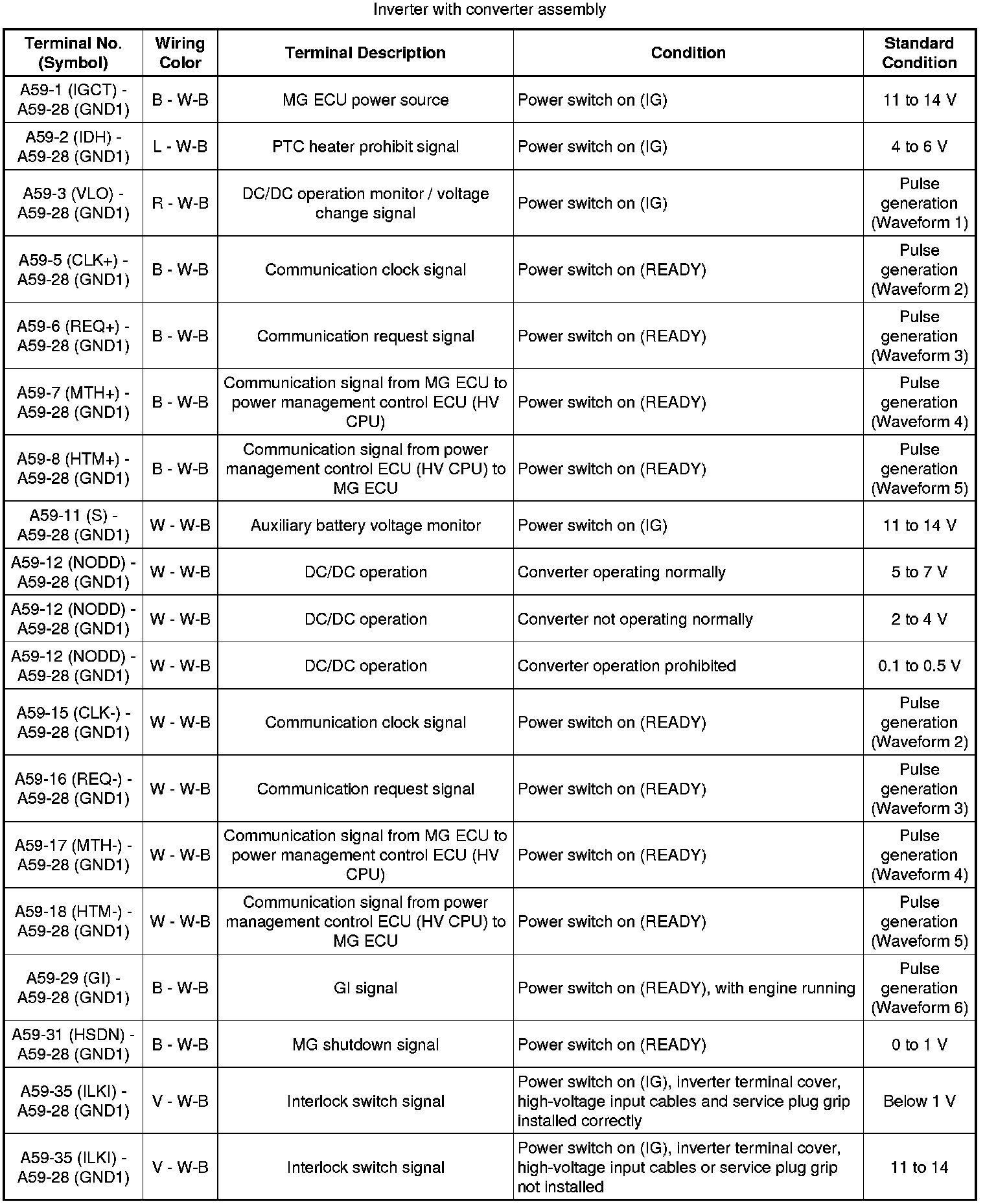 Since the inverter with converter assembly uses waterproof connectors, the voltage and waveform cannot be inspected directly. Standard voltage readings and waveforms are indicated for reference only.