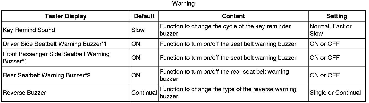 * *1: This setting is only valid for the buzzer which sounds at 20 km/h (12 mph) or more.