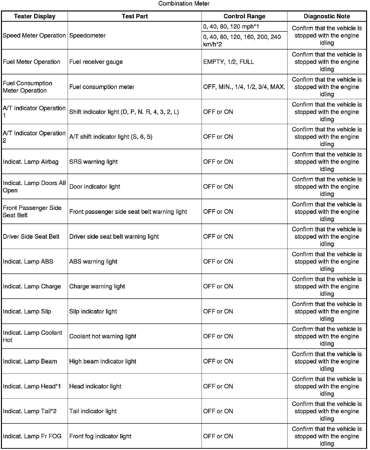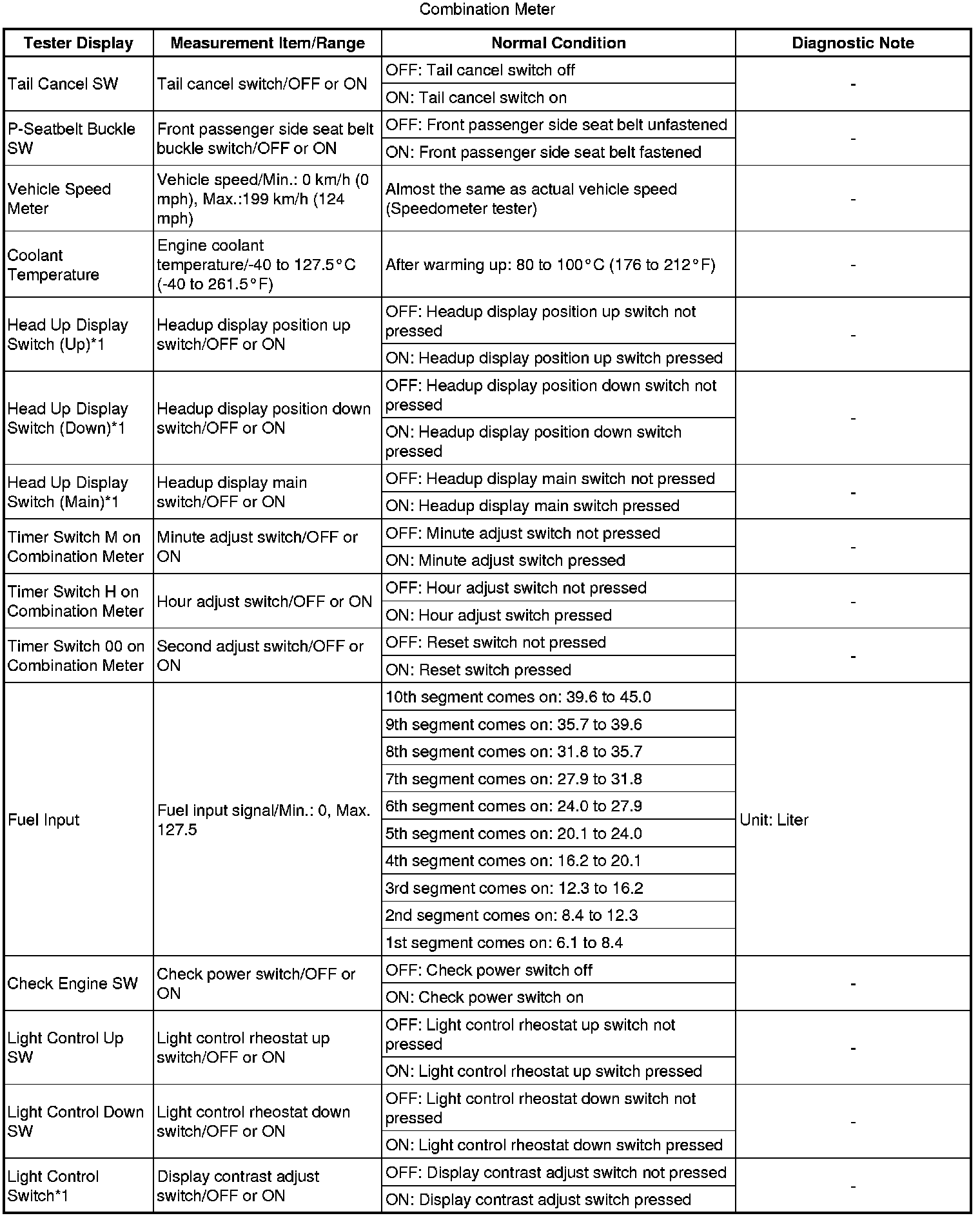 (1) for Combination Meter: Body Electrical / Combination Meter / Data List.