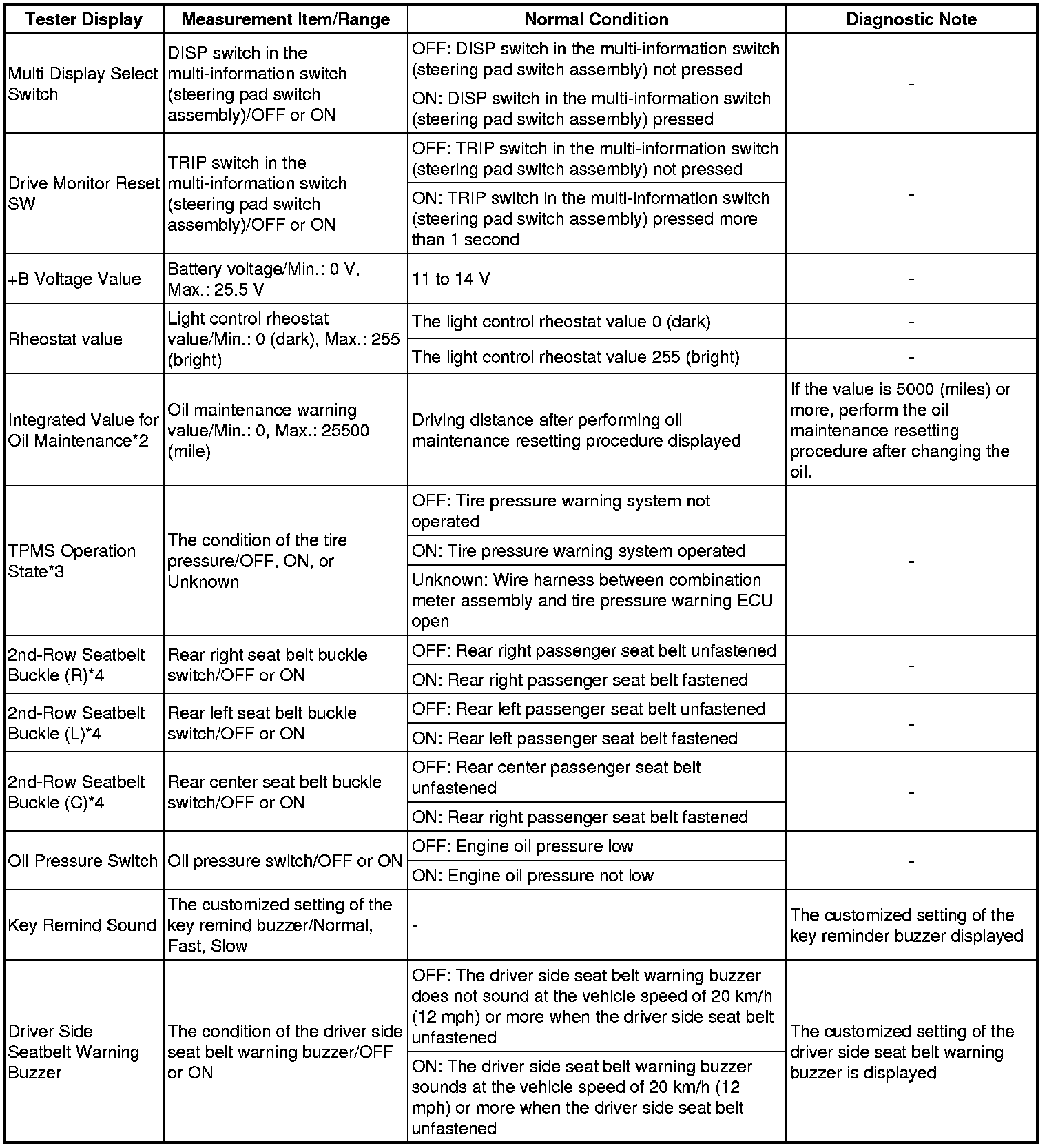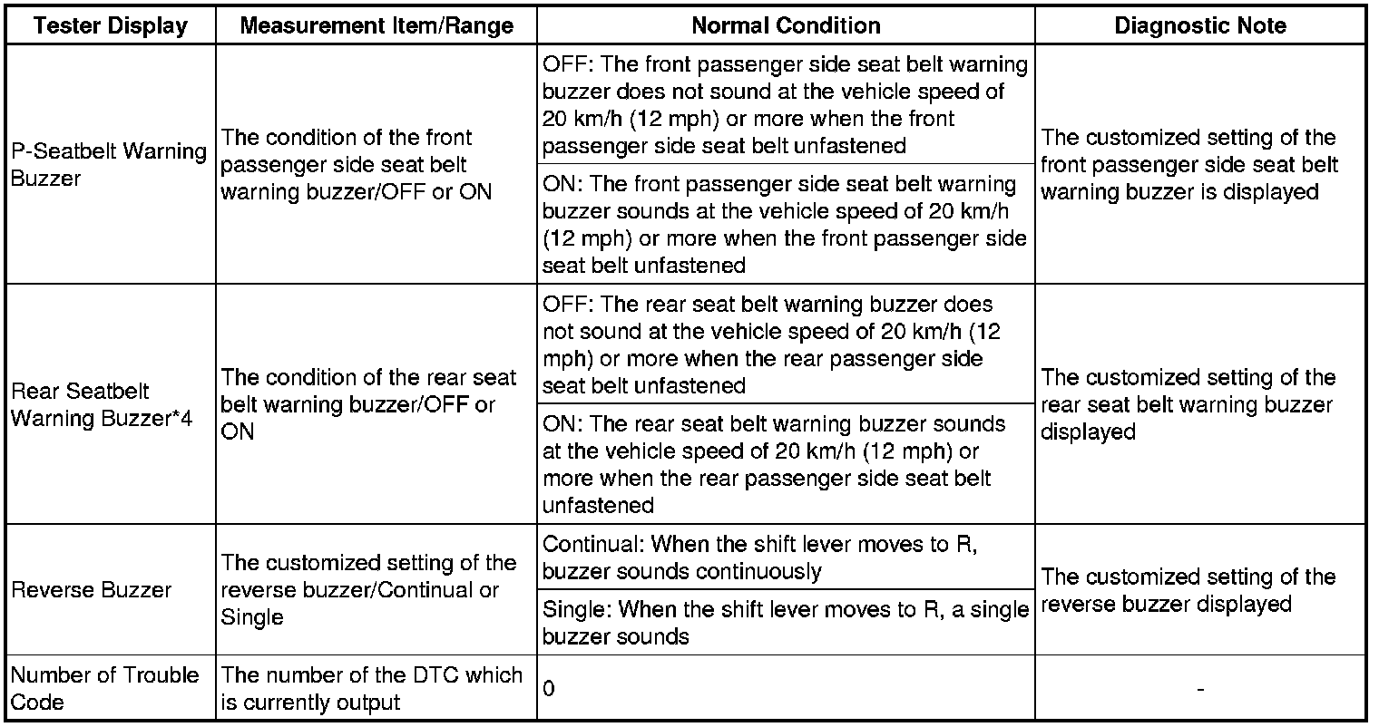 * *4: w/ Rear Seat Belt Warning