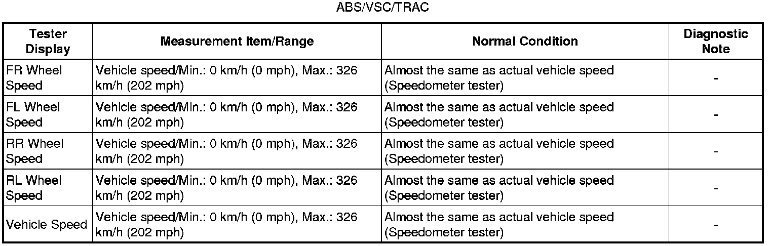 (2) for ABS/VSC/TRAC: Chassis / ABS/VSC/TRAC / Data List.