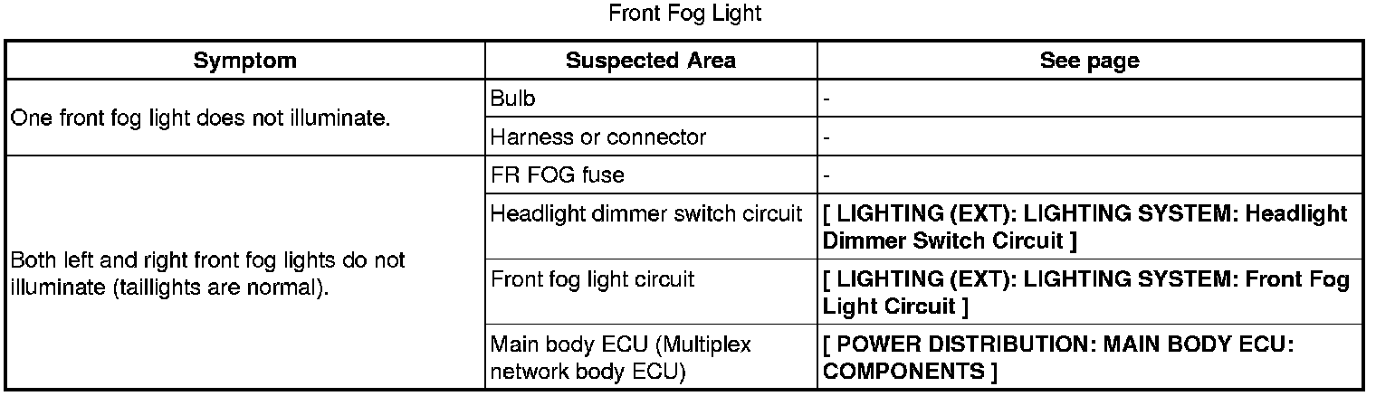 LIGHTING (EXT): LIGHTING SYSTEM: PROBLEM SYMPTOMS TABLE