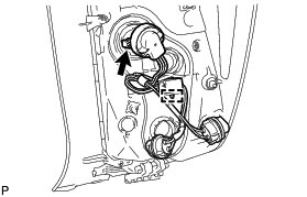 (b) Turn the back-up light bulb and rear combination light socket and wire sub-assembly in the direction indicated by the arrow shown in the illustration to install them as a unit.