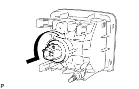 (b) Turn the front turn signal light bulb and front turn signal light plug assembly in the direction indicated by the arrow shown in the illustration and install them as a unit.