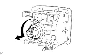 (a) Turn the front turn signal light bulb and front turn signal light plug assembly in the direction indicated by the arrow shown in the illustration, and remove them as a unit.
