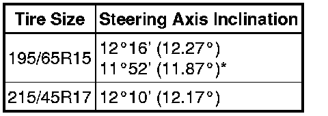 Steering Axis Inclination (Unloaded Vehicle):