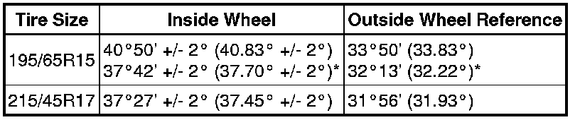 Wheel Angle (Unloaded Vehicle):