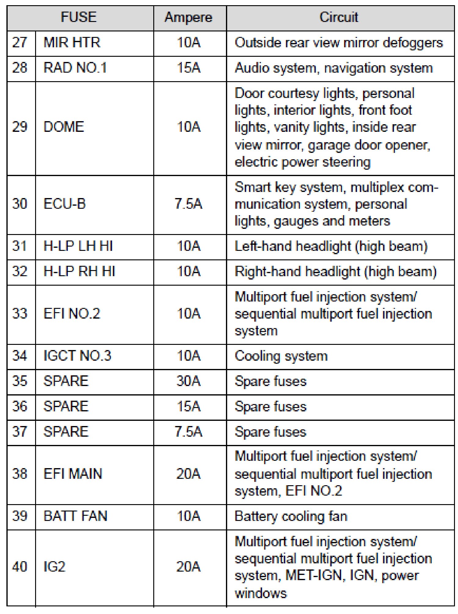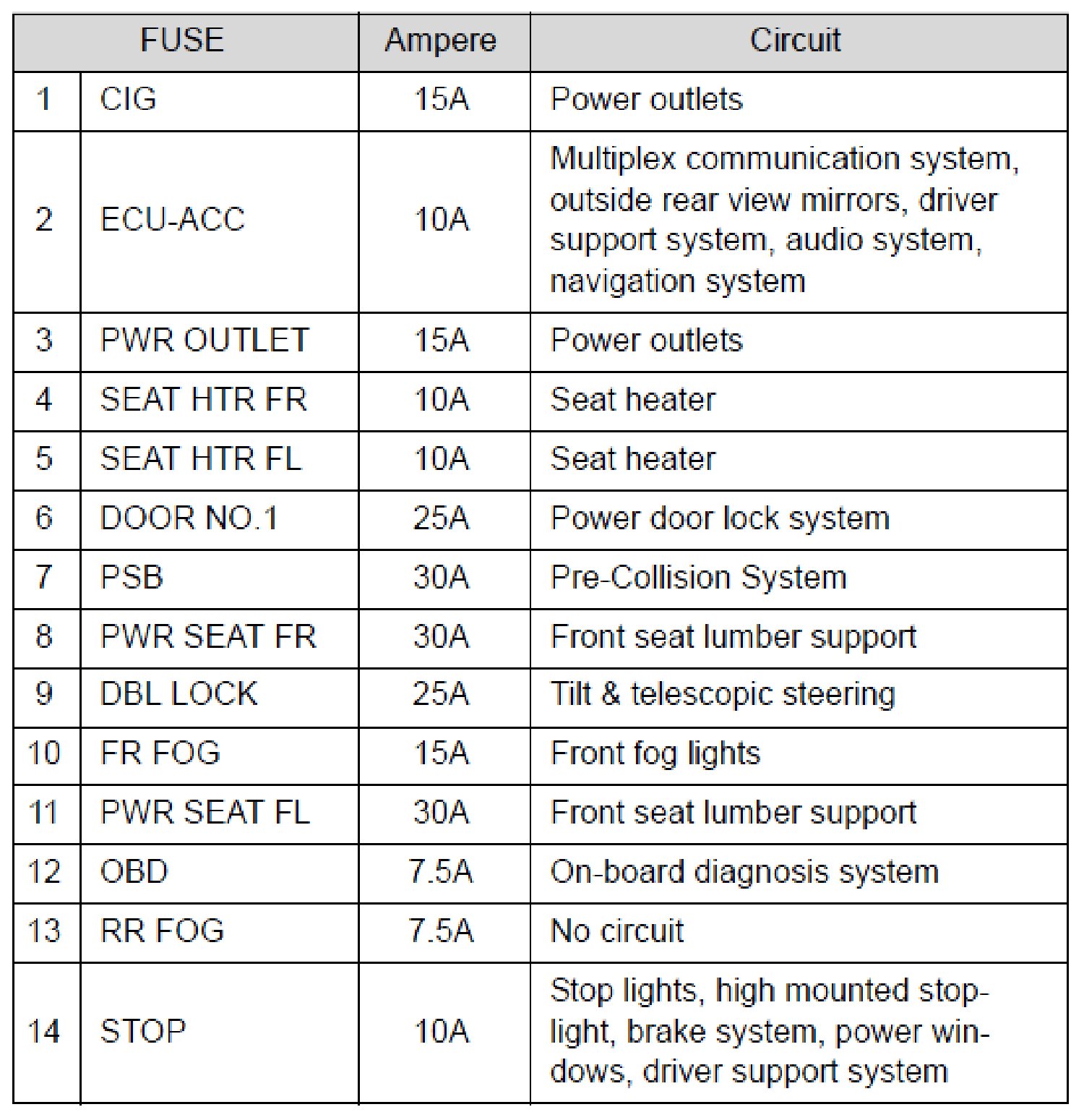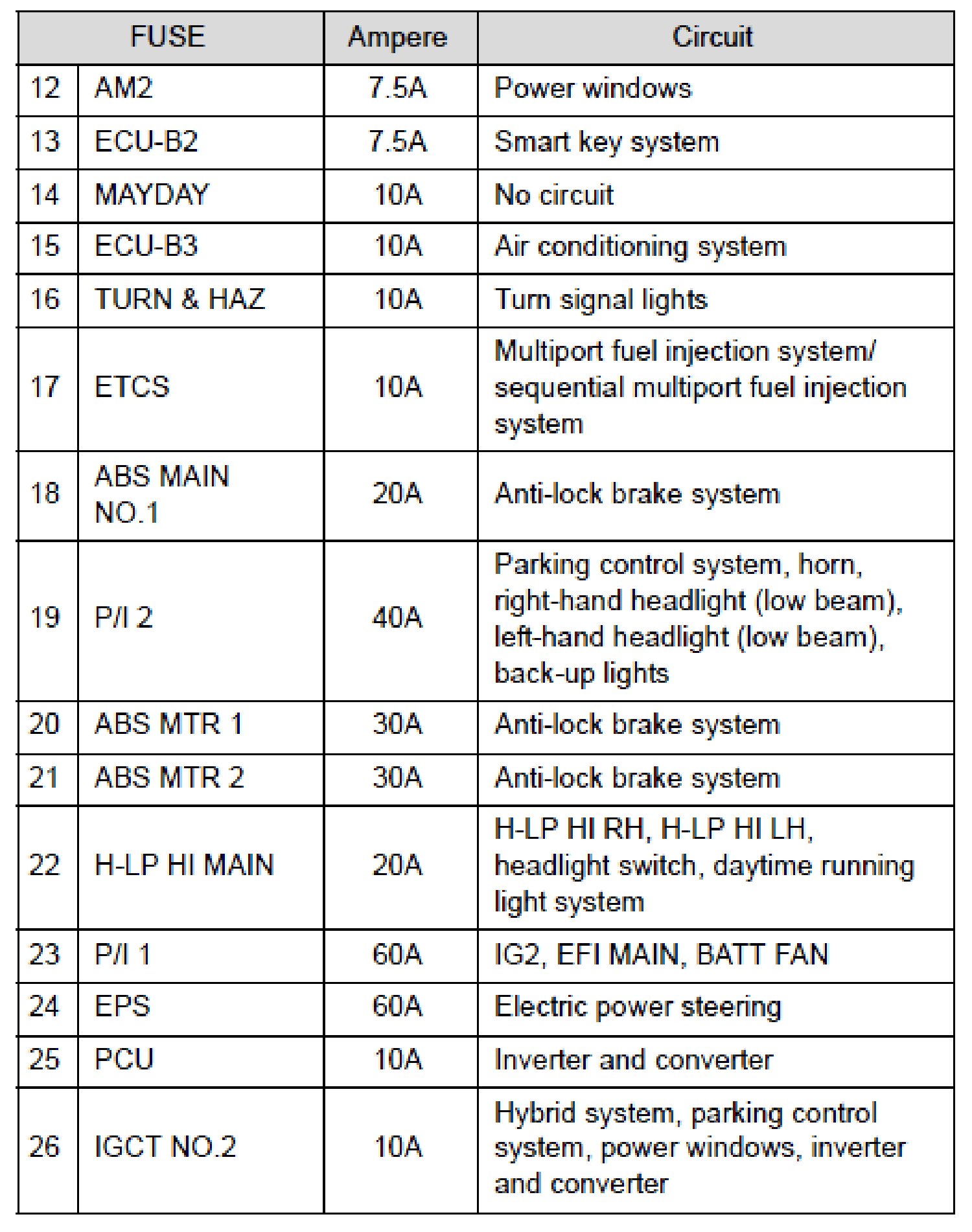 Fuse Layout and Amperage Ratings