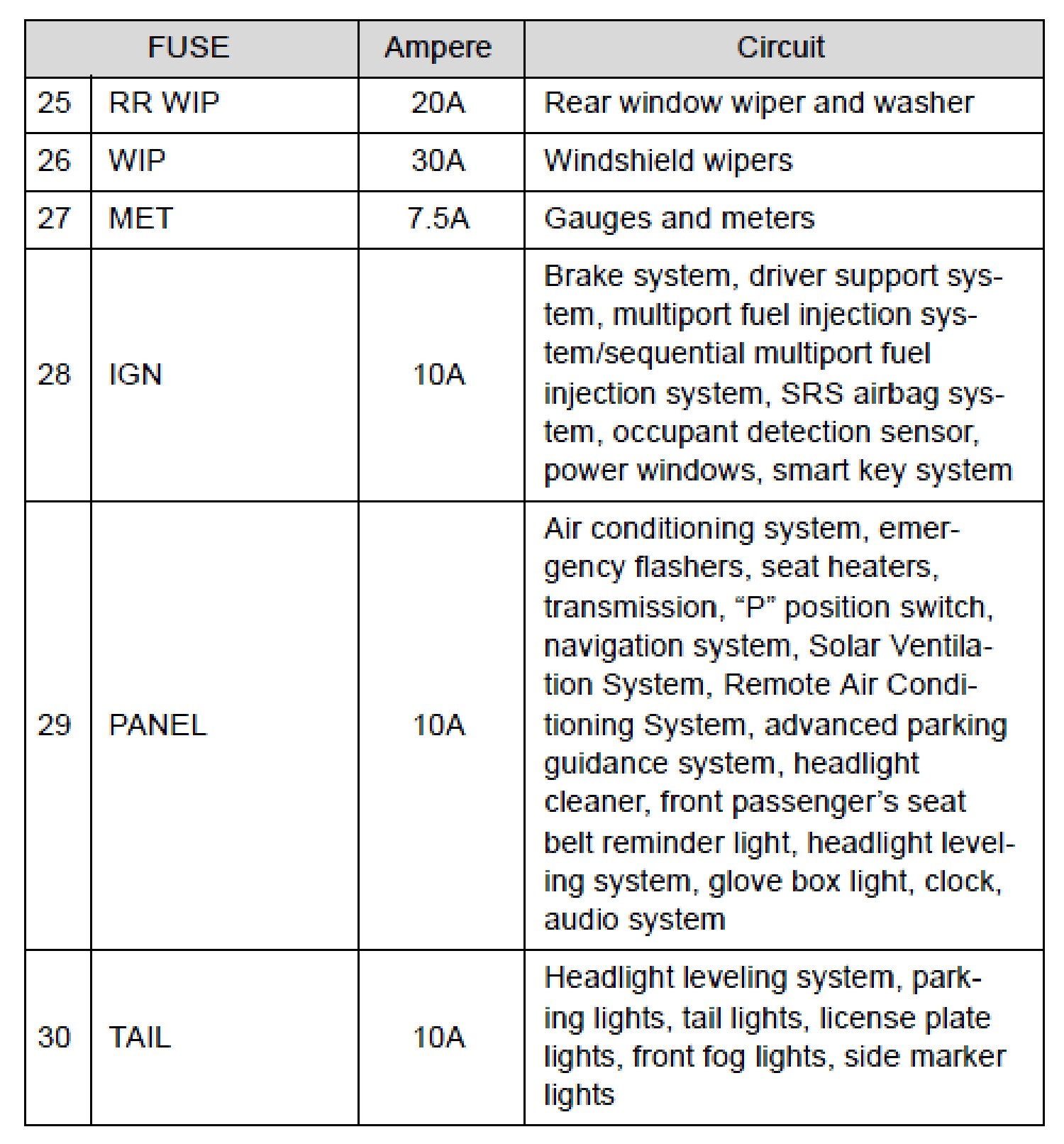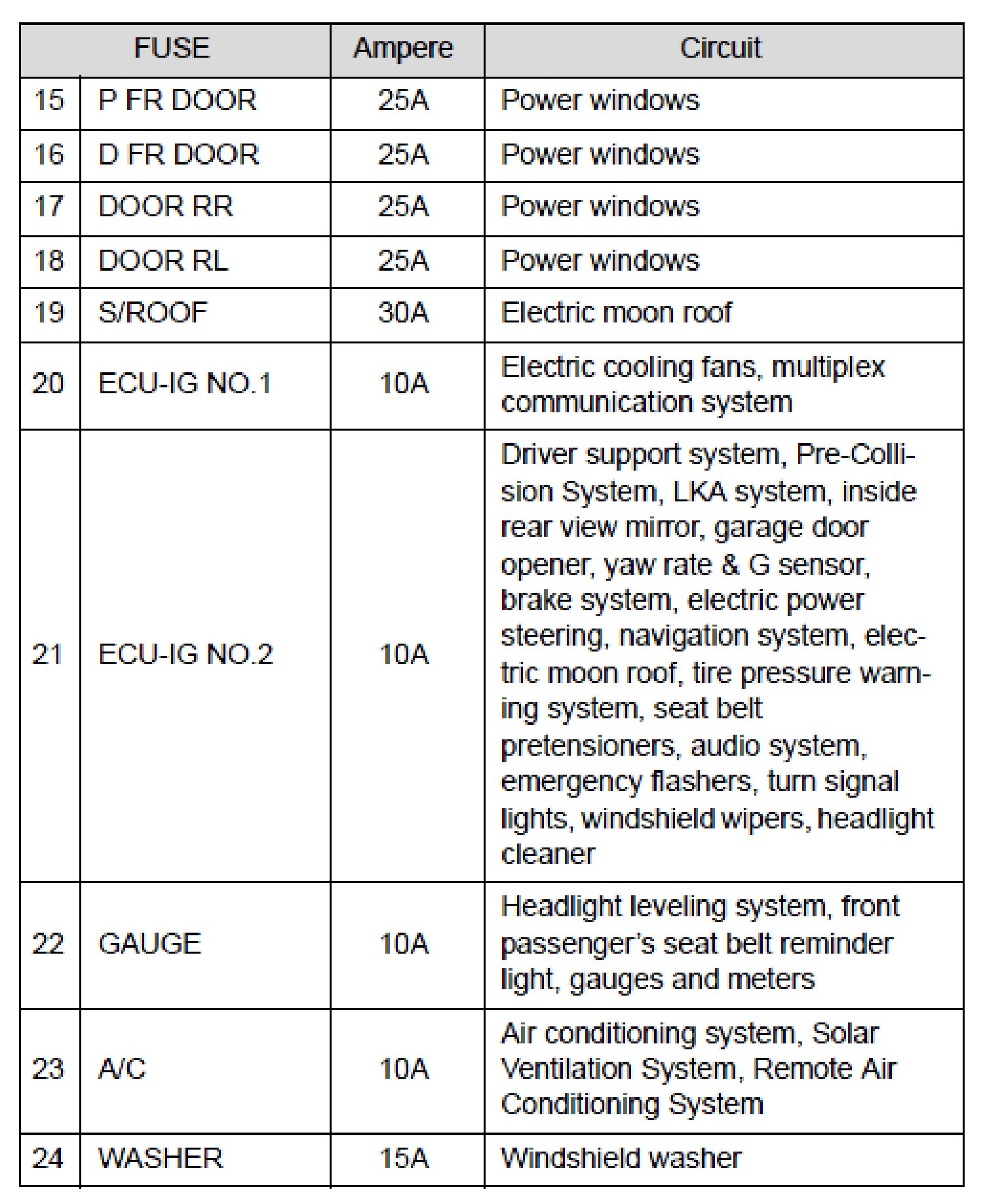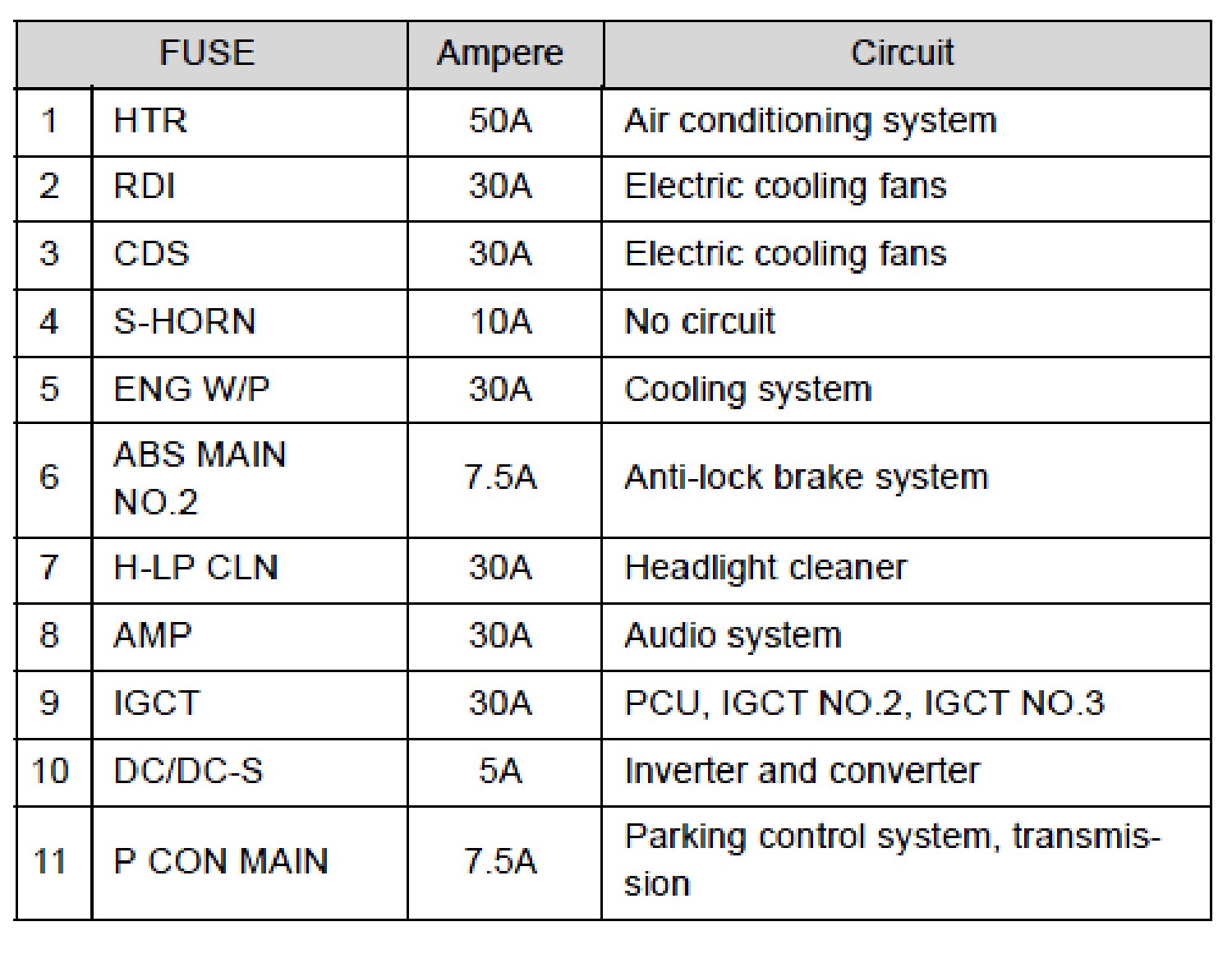 Fuse Layout and Amperage Ratings