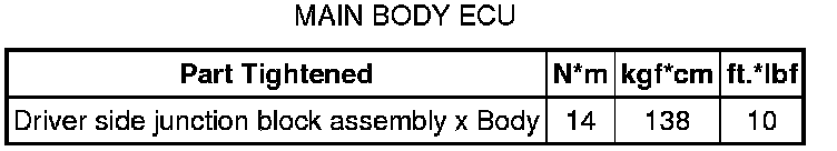 SPECIFICATIONS: POWER DISTRIBUTION: TORQUE SPECIFICATIONS