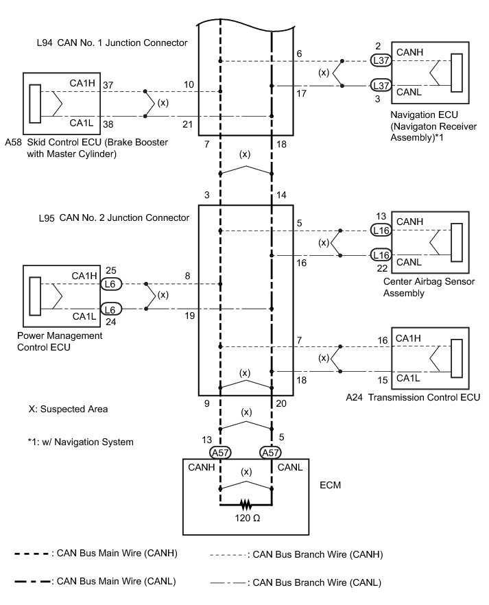 * Turn the power switch off before measuring the resistances between CAN bus main wires and between CAN bus branch wires.