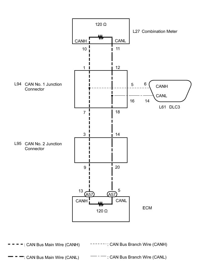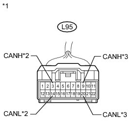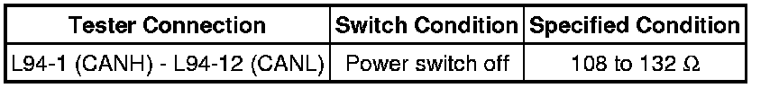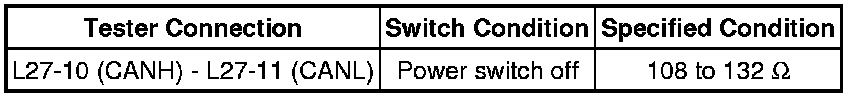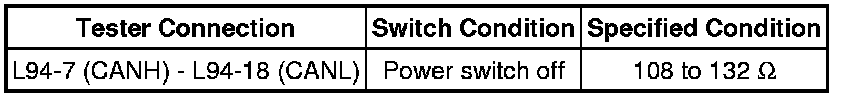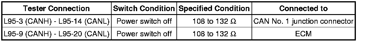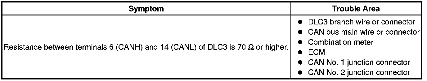 There may be an open circuit in the CAN bus main wire and/or the DLC3 branch wire when the resistance between terminals 6 (CANH) and 14 (CANL) of the DLC3 is 70 Ohms or higher.