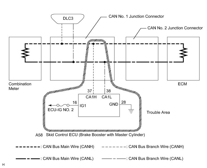 2. CHECK CAN BUS WIRE FOR DISCONNECTION (SKID CONTROL ECU BRANCH WIRE)