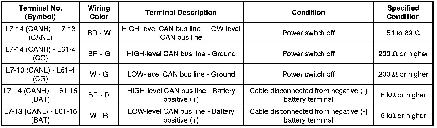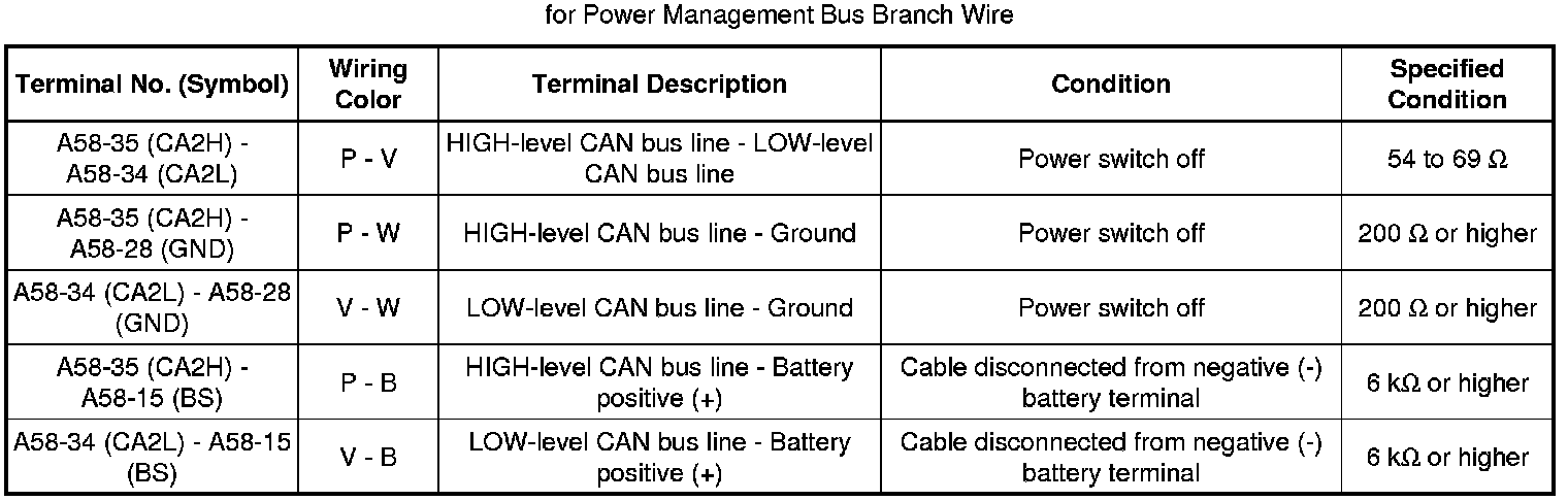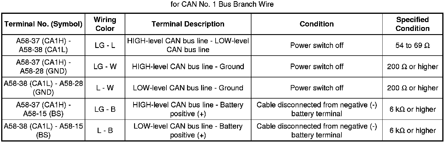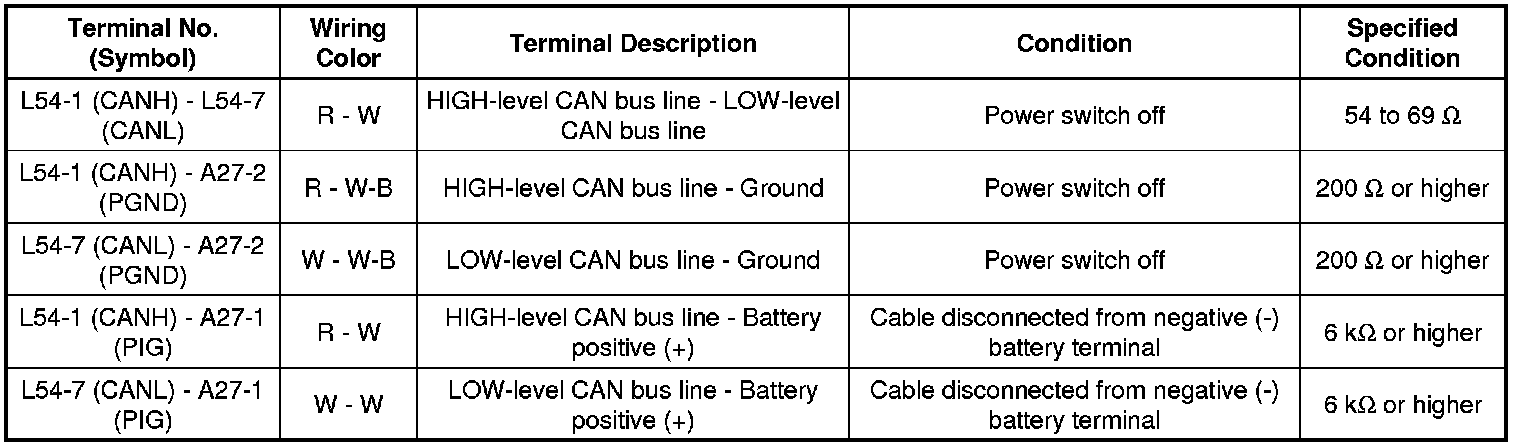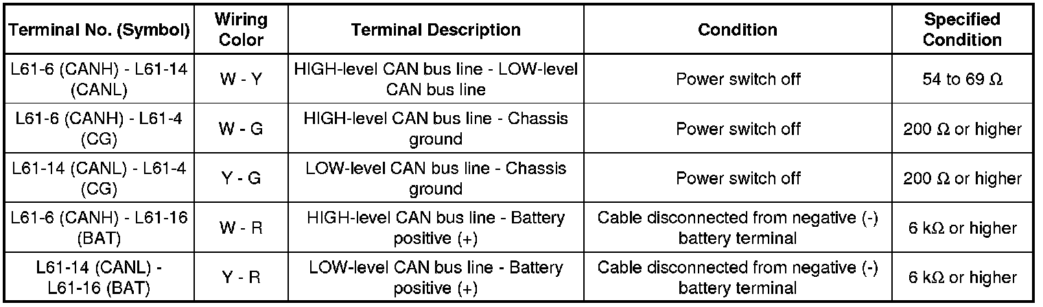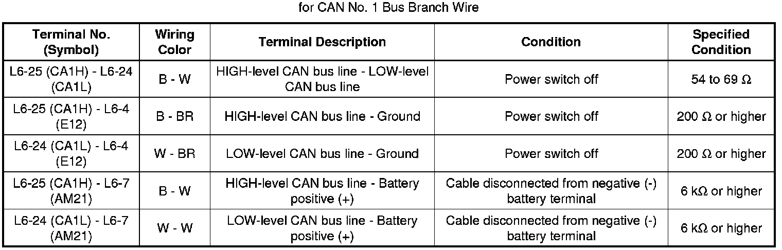 * Turn the power switch off before measuring the resistances between CAN bus main wires and between CAN bus branch wires.