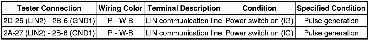 (e) Measure the voltage and check for pulses according to the value(s) in the table below.