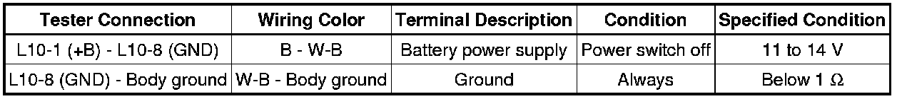 (f) If the result is not as specified, the main body ECU (multiplex network body ECU) or instrument panel junction block assembly may be malfunctioning.