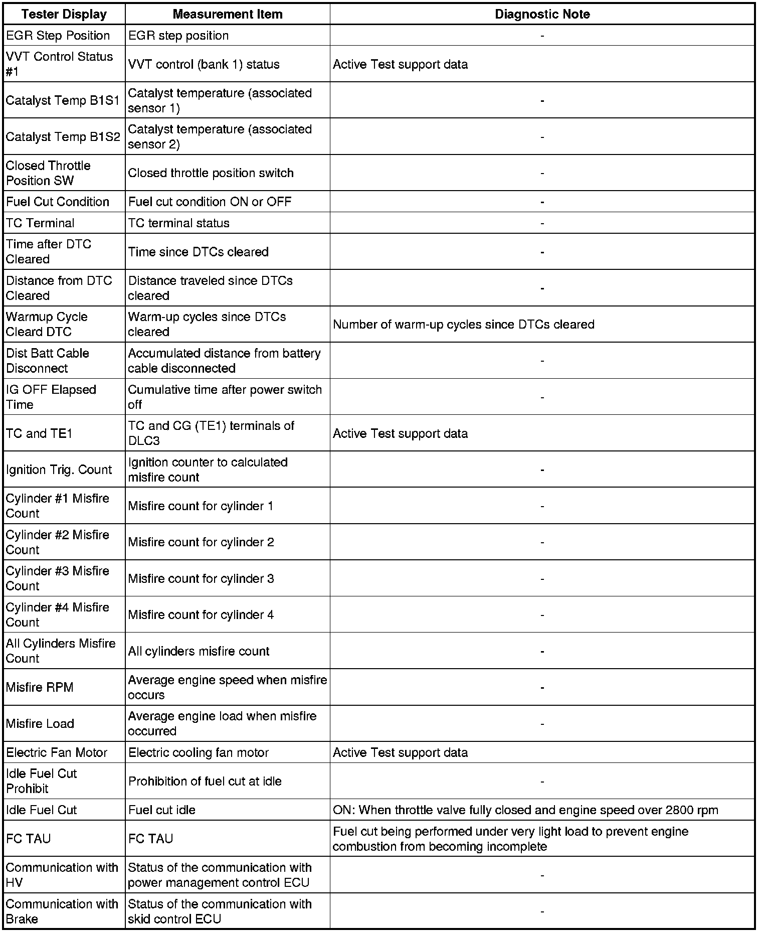 2ZR-FXE ENGINE CONTROL: SFI SYSTEM: FREEZE FRAME DATA