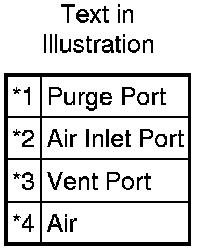 (1) With the purge port closed, blow 5 kPa (0.1 kgf/cm2, 0.7 psi) of air into the vent port, and check that air flows from the air inlet port.