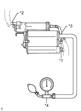 (1) Connect a pressure gauge to the vent port of the charcoal canister.