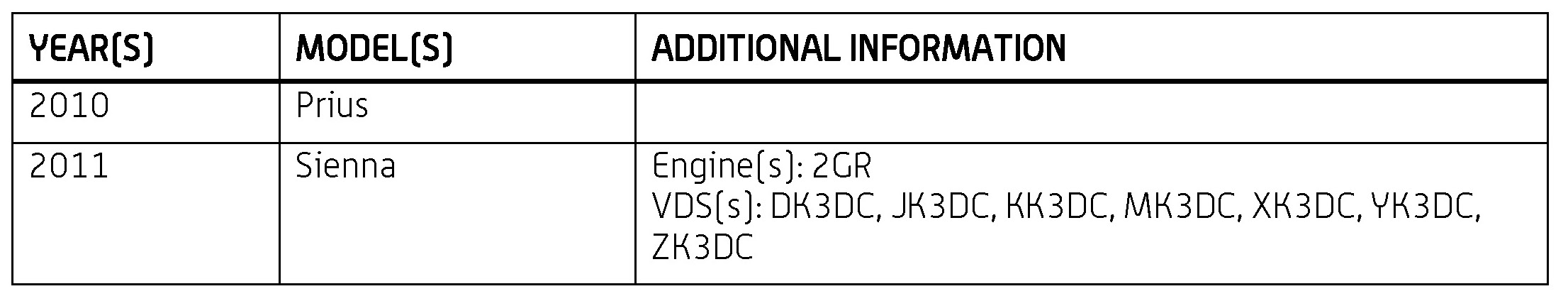 '10 Prius; '11 Sienna
