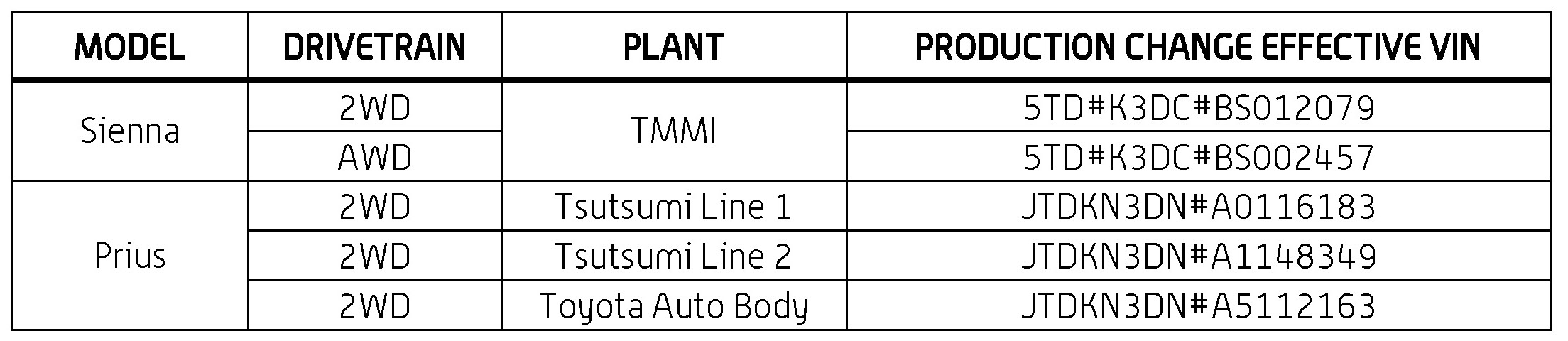 This TSB applies to vehicles produced BEFORE the Production Change Effective VINs shown.