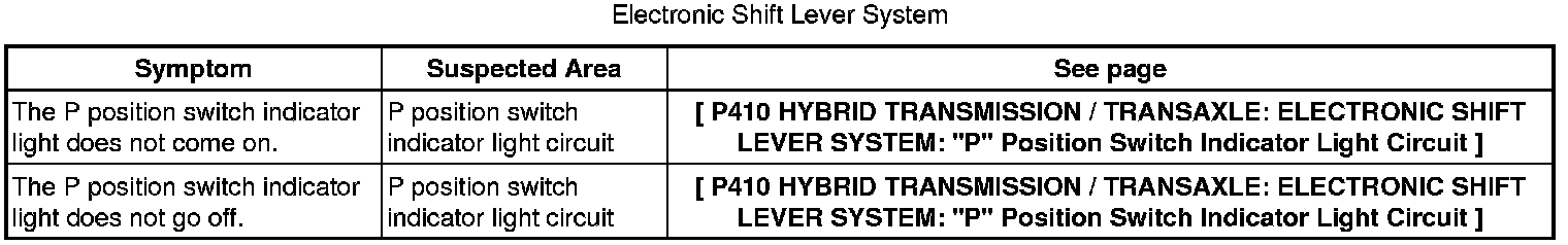 P410 HYBRID TRANSMISSION / TRANSAXLE: ELECTRONIC SHIFT LEVER SYSTEM: PROBLEM SYMPTOMS TABLE