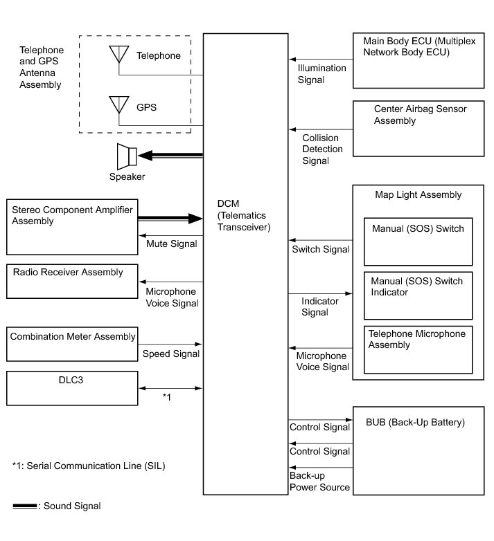 (c) When it is time to replace the BUB (Back-Up Battery), the manual (SOS) switch red indicator will come on. The DCM (Telematics Transceiver) will also store a DTC.