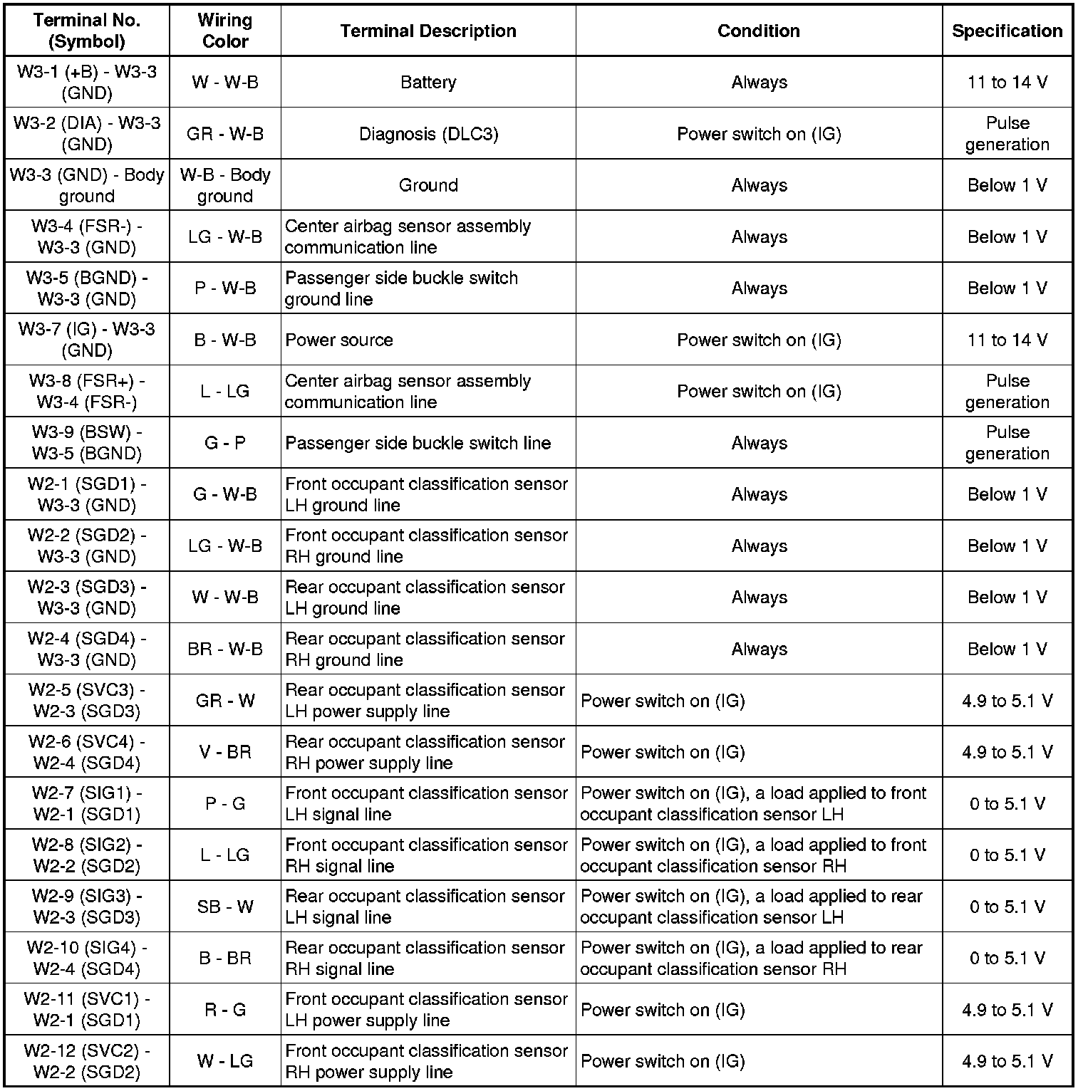 SUPPLEMENTAL RESTRAINT SYSTEMS: OCCUPANT CLASSIFICATION SYSTEM: TERMINALS OF ECU