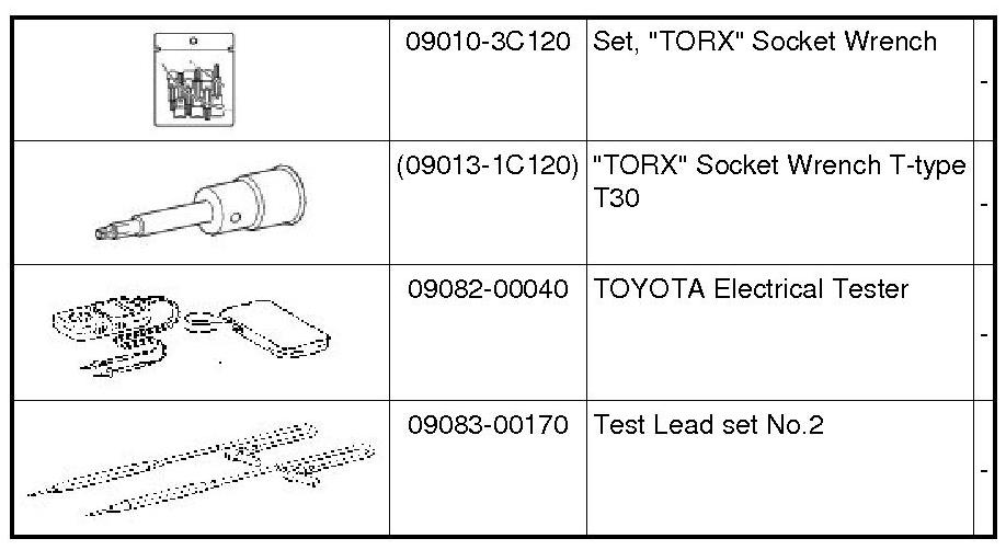 PREPARATION: SUPPLEMENTAL RESTRAINT SYSTEMS: RECOMMENDED TOOLS