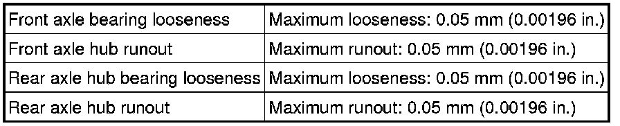 SPECIFICATIONS: AXLE AND DIFFERENTIAL: SERVICE DATA