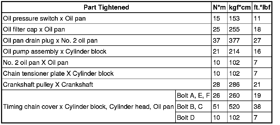 SPECIFICATIONS: 2ZR-FXE LUBRICATION: TORQUE SPECIFICATIONS