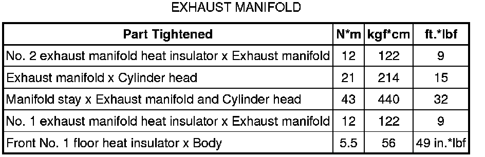SPECIFICATIONS: 2ZR-FXE INTAKE / EXHAUST: TORQUE SPECIFICATIONS